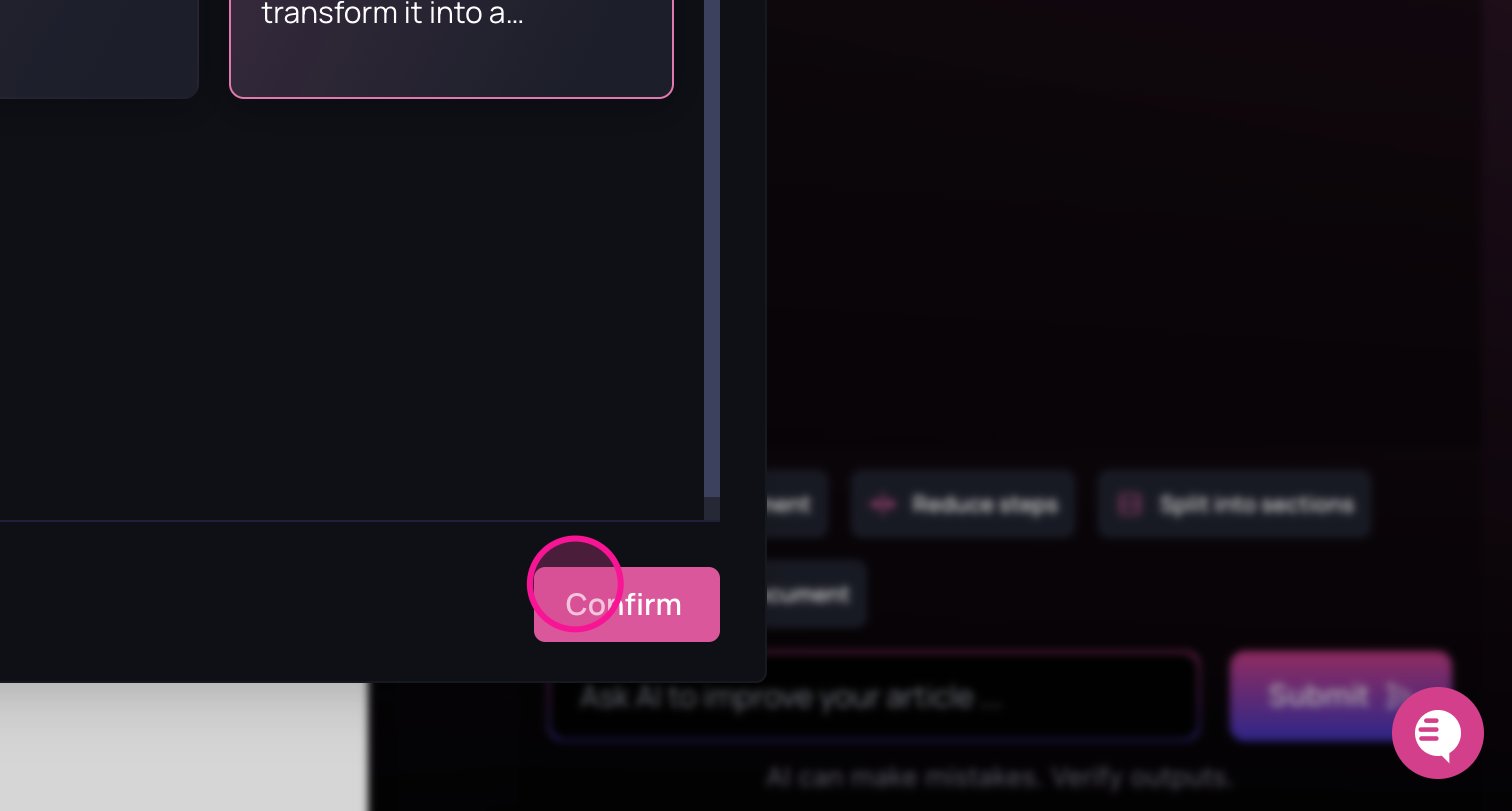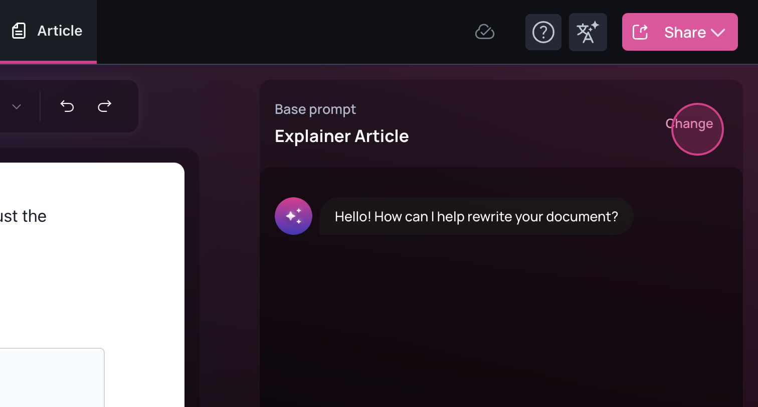 The AI will begin transforming the document to align with the selected base