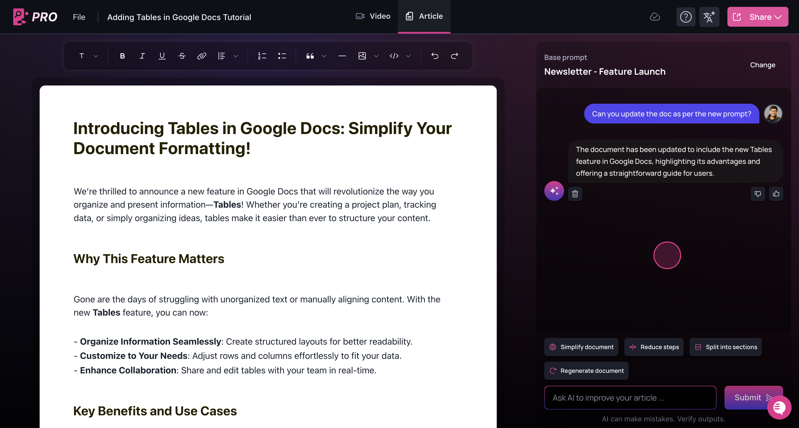 Next, as an example, let’s edit the document using the AI Copilot by