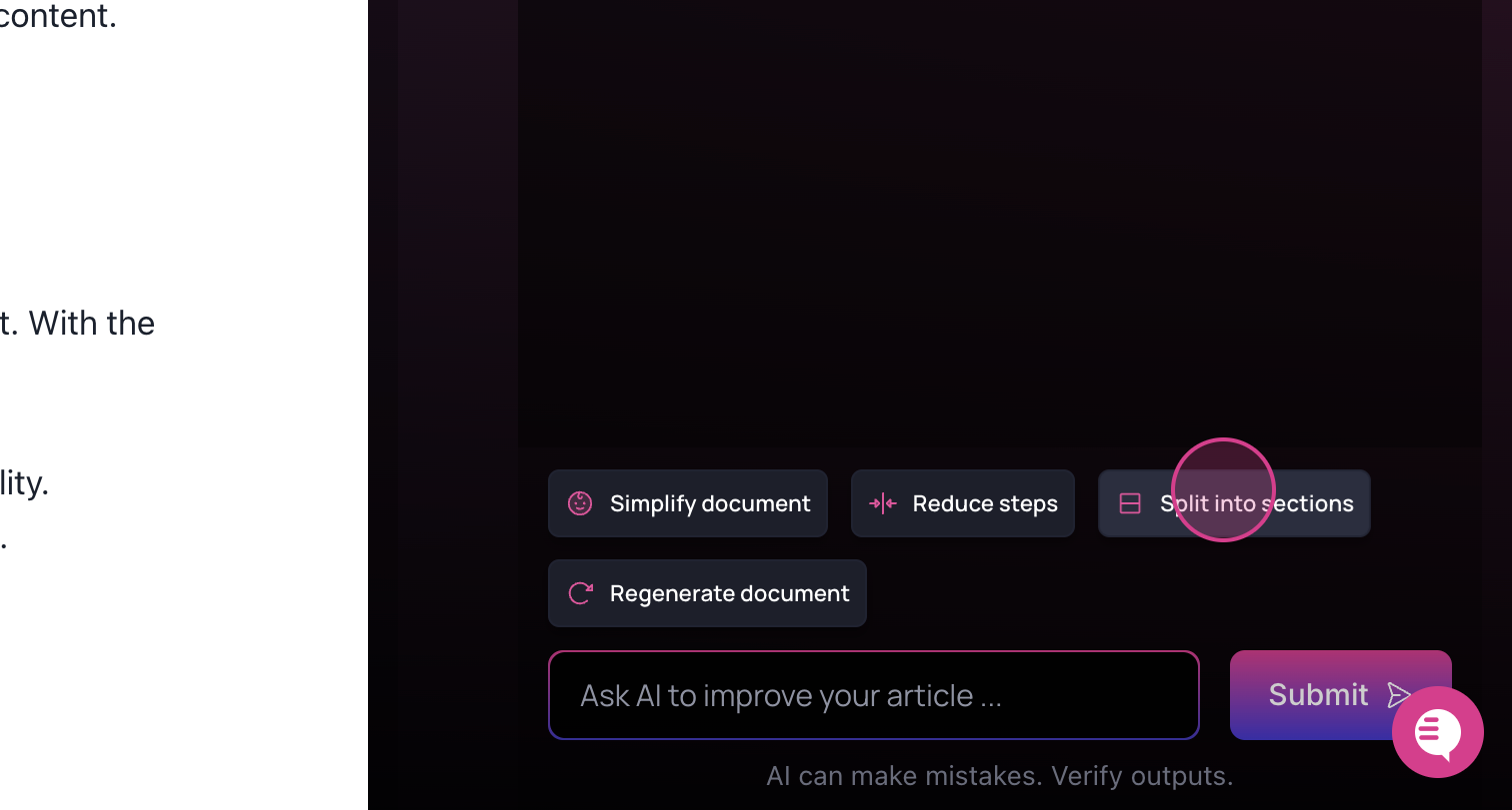 complete, the AI will organize the document into sections based on the