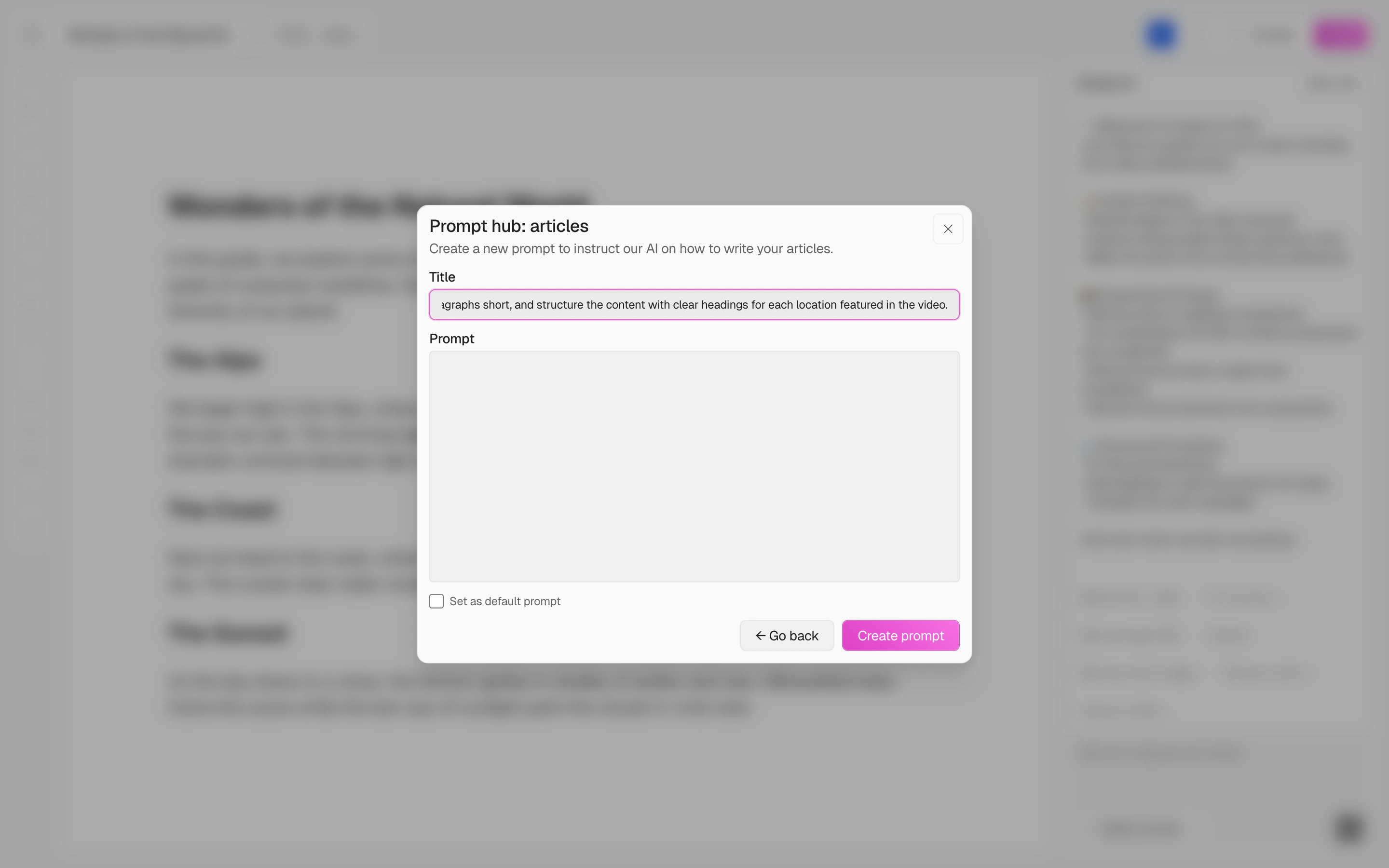 - Focus on reusable rules — prompts work best for instructions you want applied consistently across articles