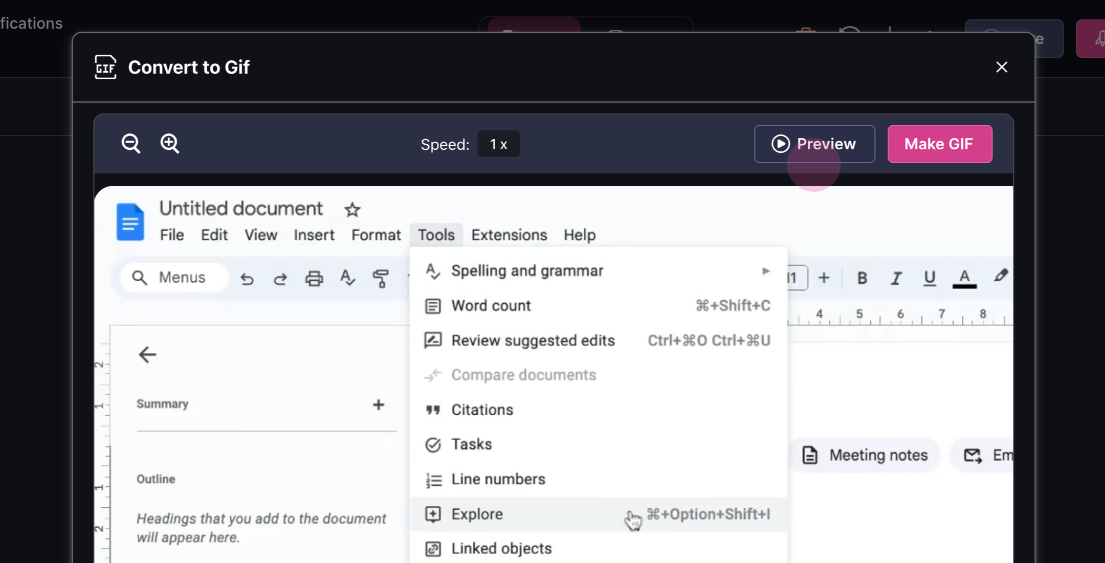 zoom. At any point, click on the Preview button to see what your GIF