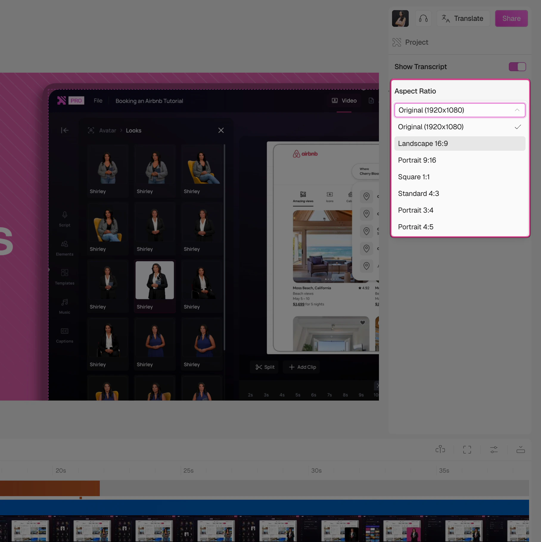 In the right panel, click the Aspect Ratio dropdown.The first option shows your original recording resolution. Select this to keep the video exactly as recorded.
