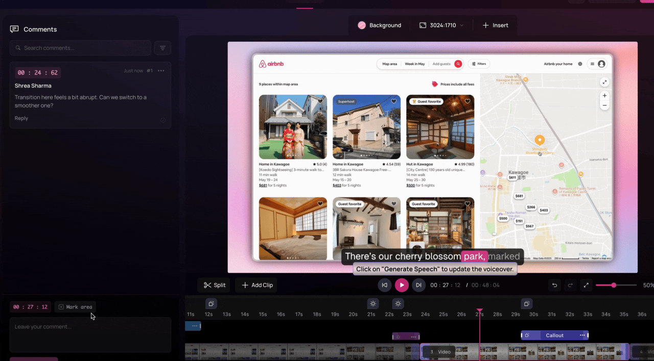 To make feedback more visual, click on Mark Area while adding a comment and drag over the section of the canvas you want to highlight.