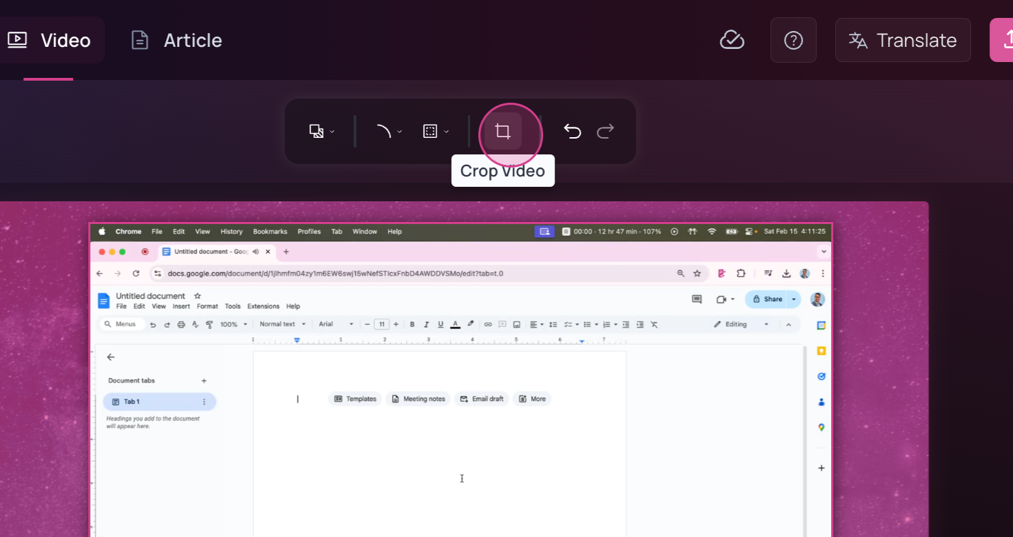 Upon clicking, the toolbar options will change. Navigate to the Crop