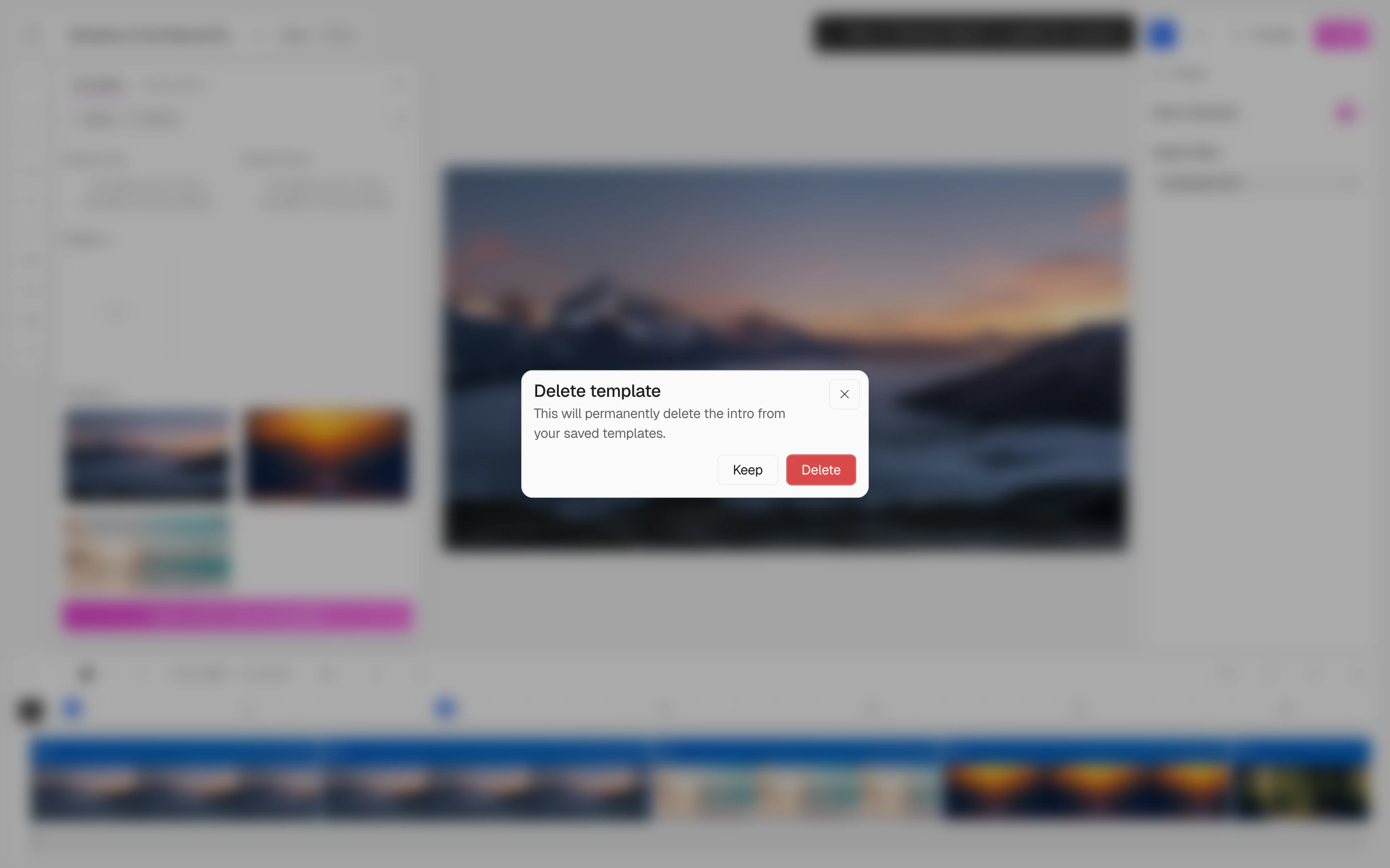 - Default templates cannot be deleted — if a template is set as the default intro or outro, you must first remove it as the default before deleting it.