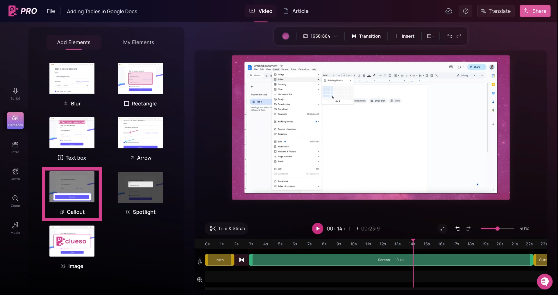 add a callout, then navigate to the Elements option on the left menu.