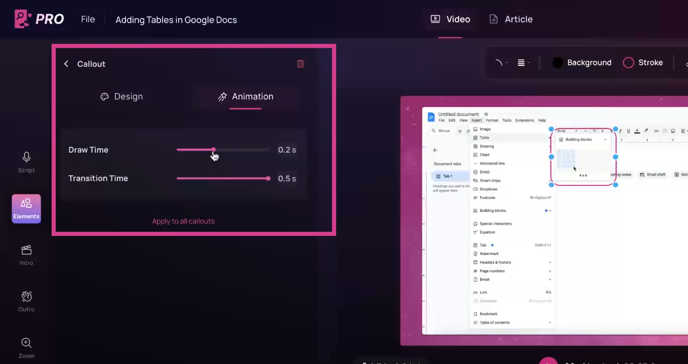 Click on the element to access the callout settings. Modify the stroke