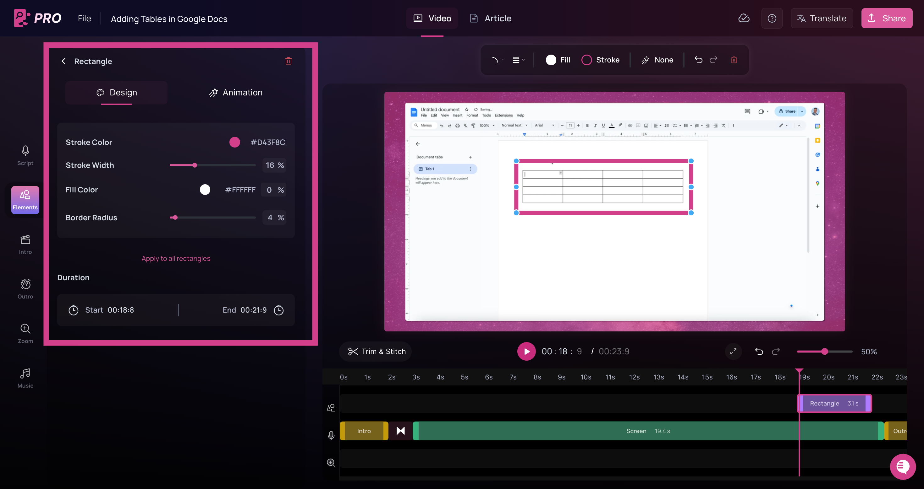 color, stroke width, fill color, border radius, and the opacity of the fill