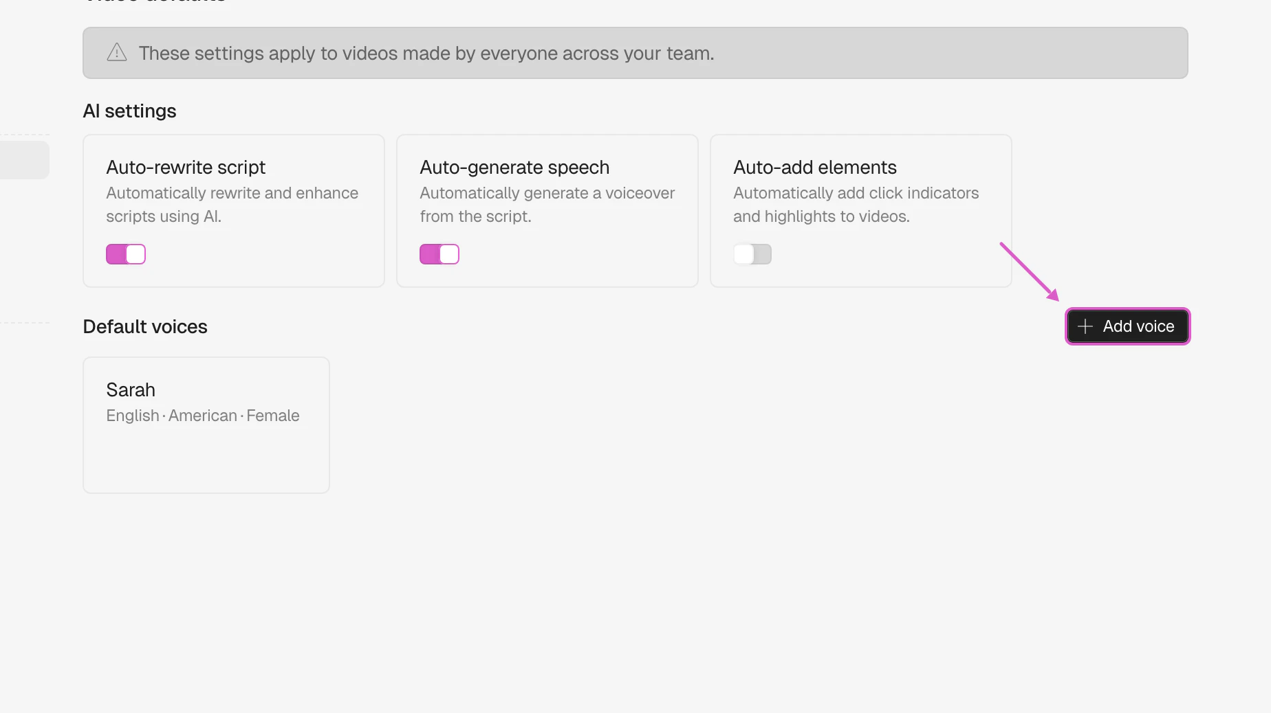 This guide shows you how to set a default voice for each language. Once selected, that voice will be used automatically whenever you create a new video in that language, saving you the step of choosing it each time.