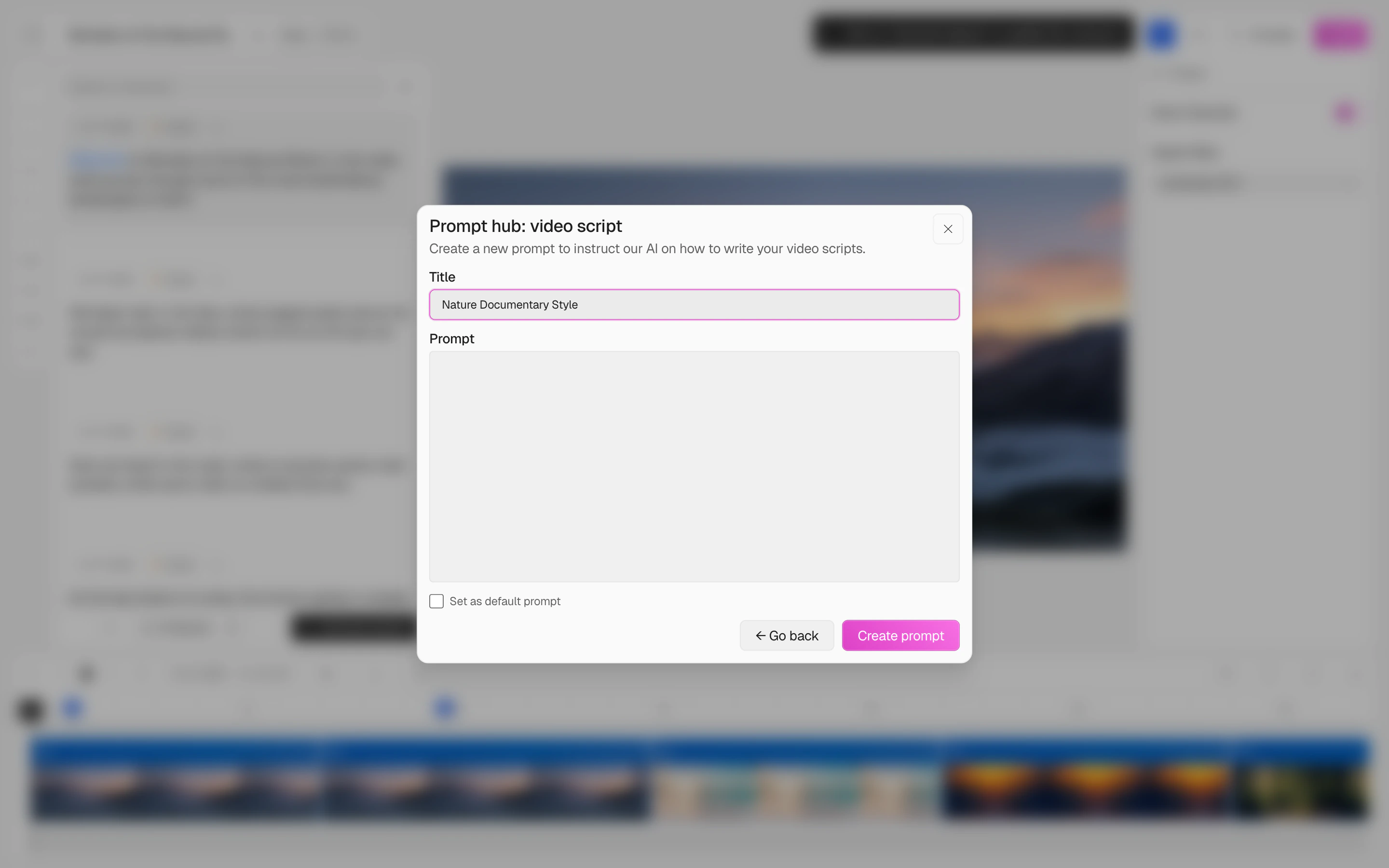 - Set as default prompt (optional) — makes this the default for all future video rewrites